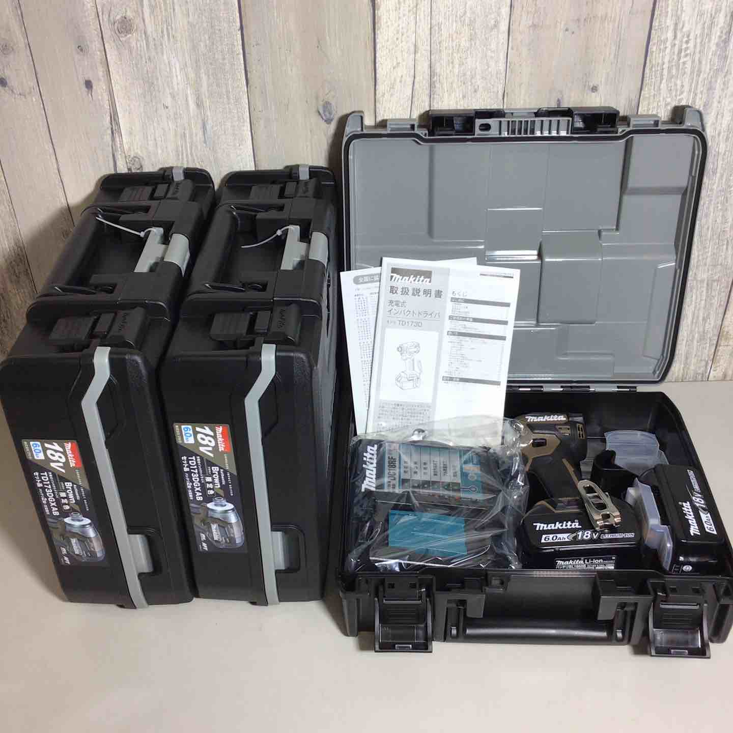 【未使用品】 限定色 マキタ makita コードレス インパクトドライバー TD173DGXAB 3台 フルセット インパクト ブラウン 茶 茶色 純正 純正品 【戸田店】