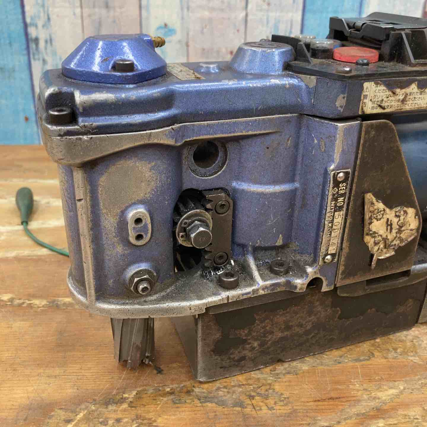 通電・ドリルの回転・磁力の確認をしています。ハンドルが欠品しておりドリルの上下動が不明となります。