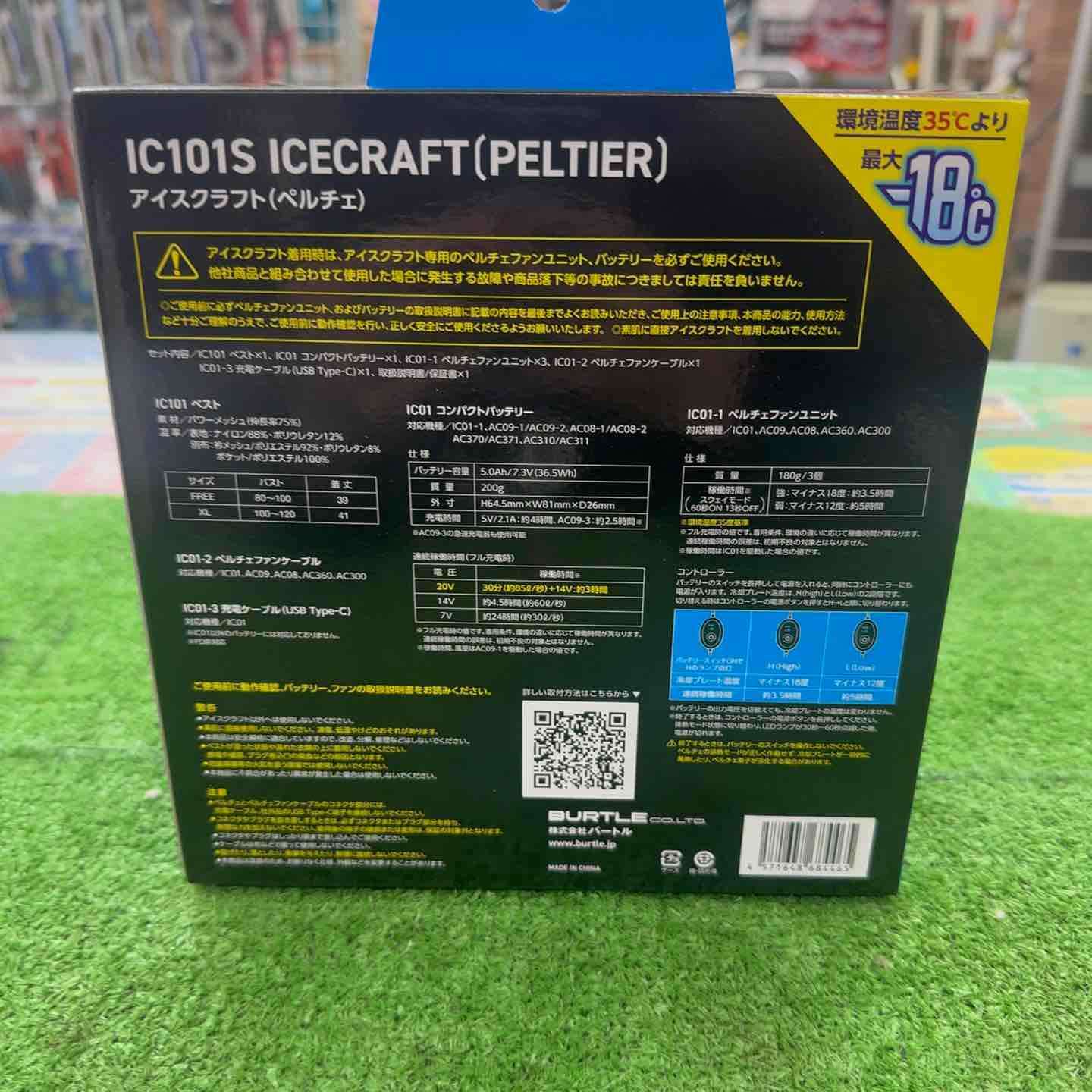 仕様1 | セット内容/IC101 ベスト×1 IC01 コンパクトバッテリー×1 IC01-1 ペルチェファンユニット×3 |