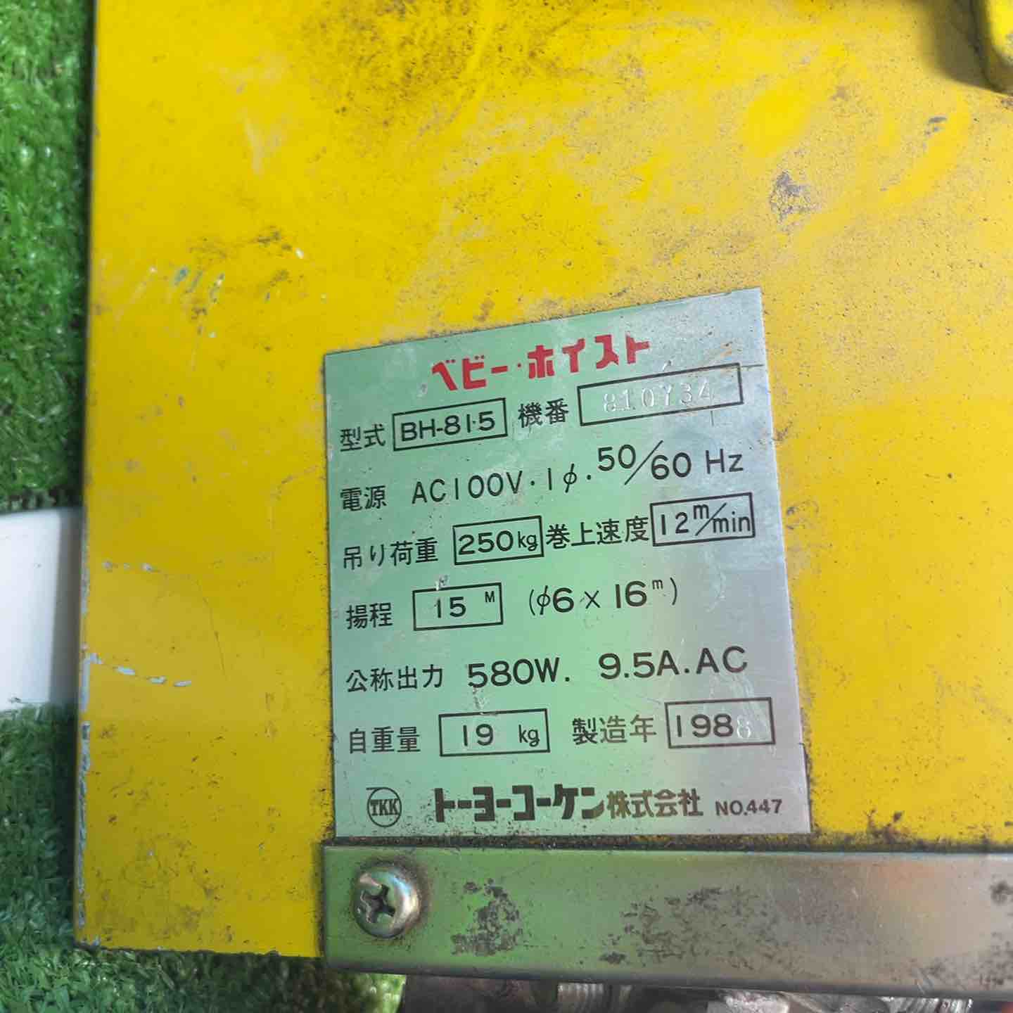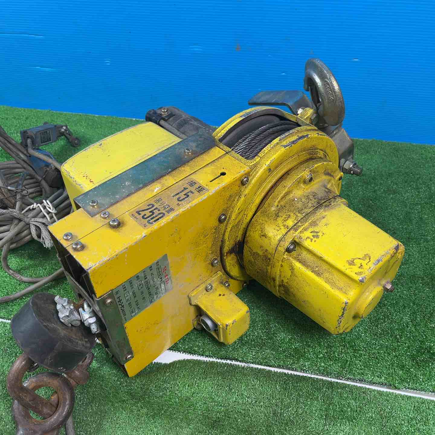 | 備考 | 過巻防止リミットが欠損している。ケーブルが飛び出してる(用途不明)。通電して、無負荷で上げ下げできることは確認済み。 |