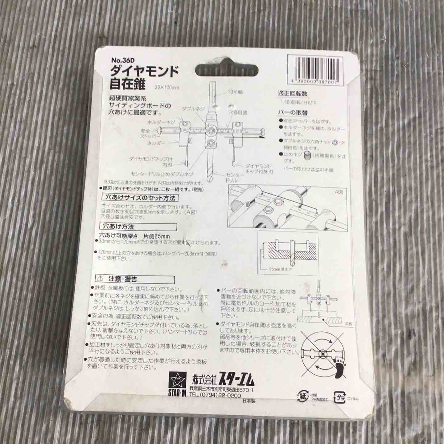 | 仕様1 | No.36Dは1台で径30~120mmまで、No.36DLは30~200mmまでの穴あけが可能 |