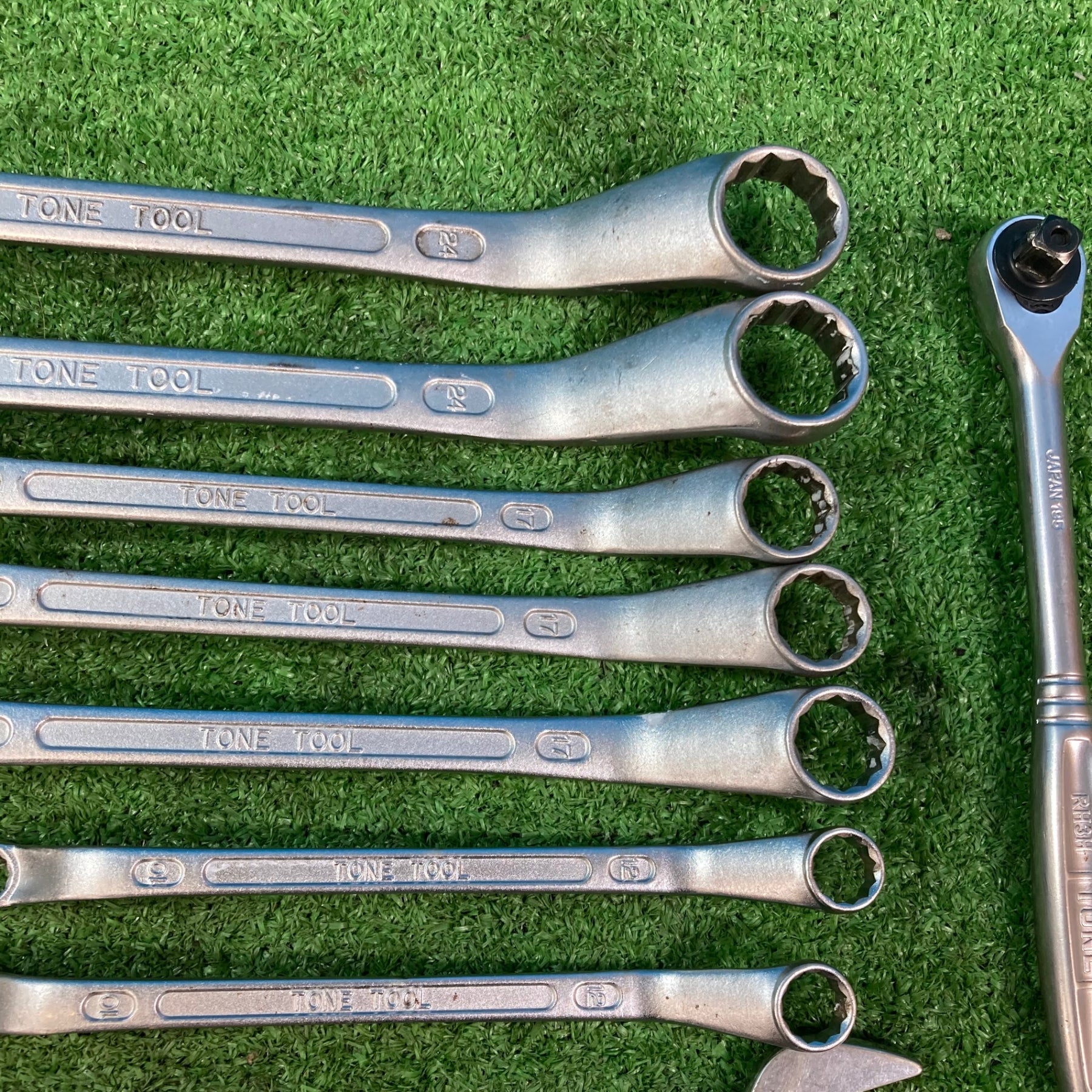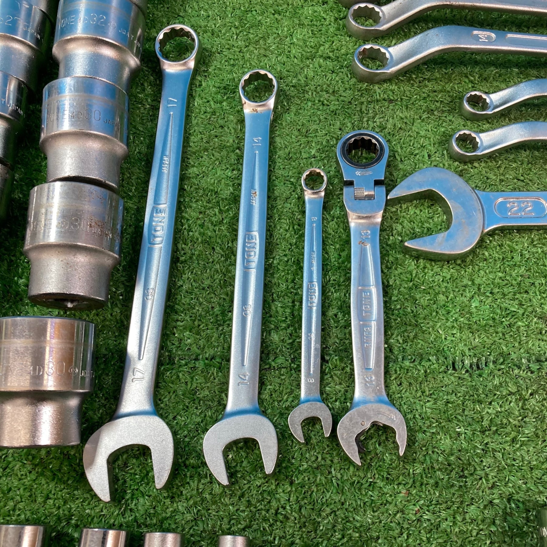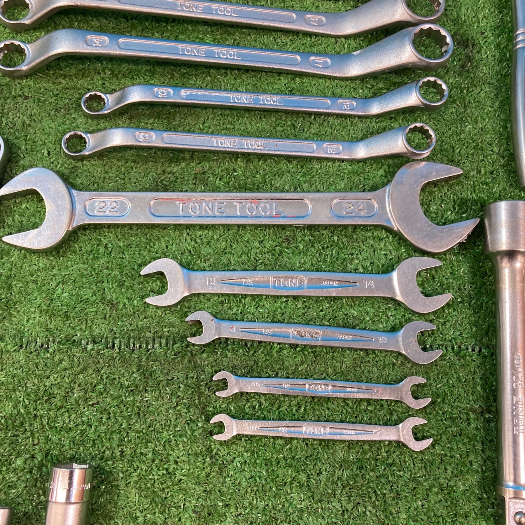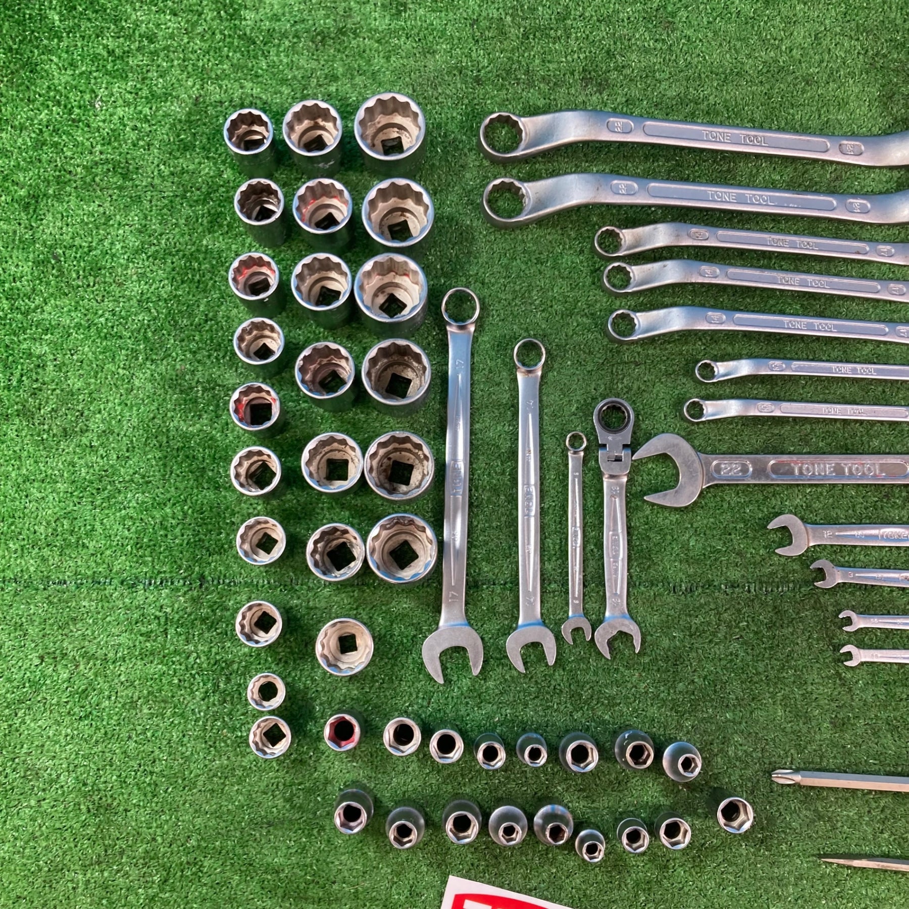 【中古現状品】トネ(TONE) まとめセット メガネ スパナ コンビ ラチェット ソケット12P/6P各種 計65点