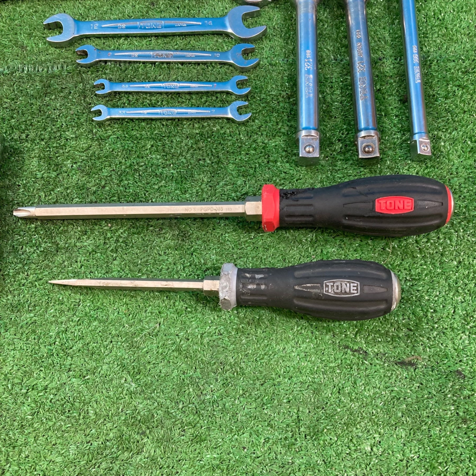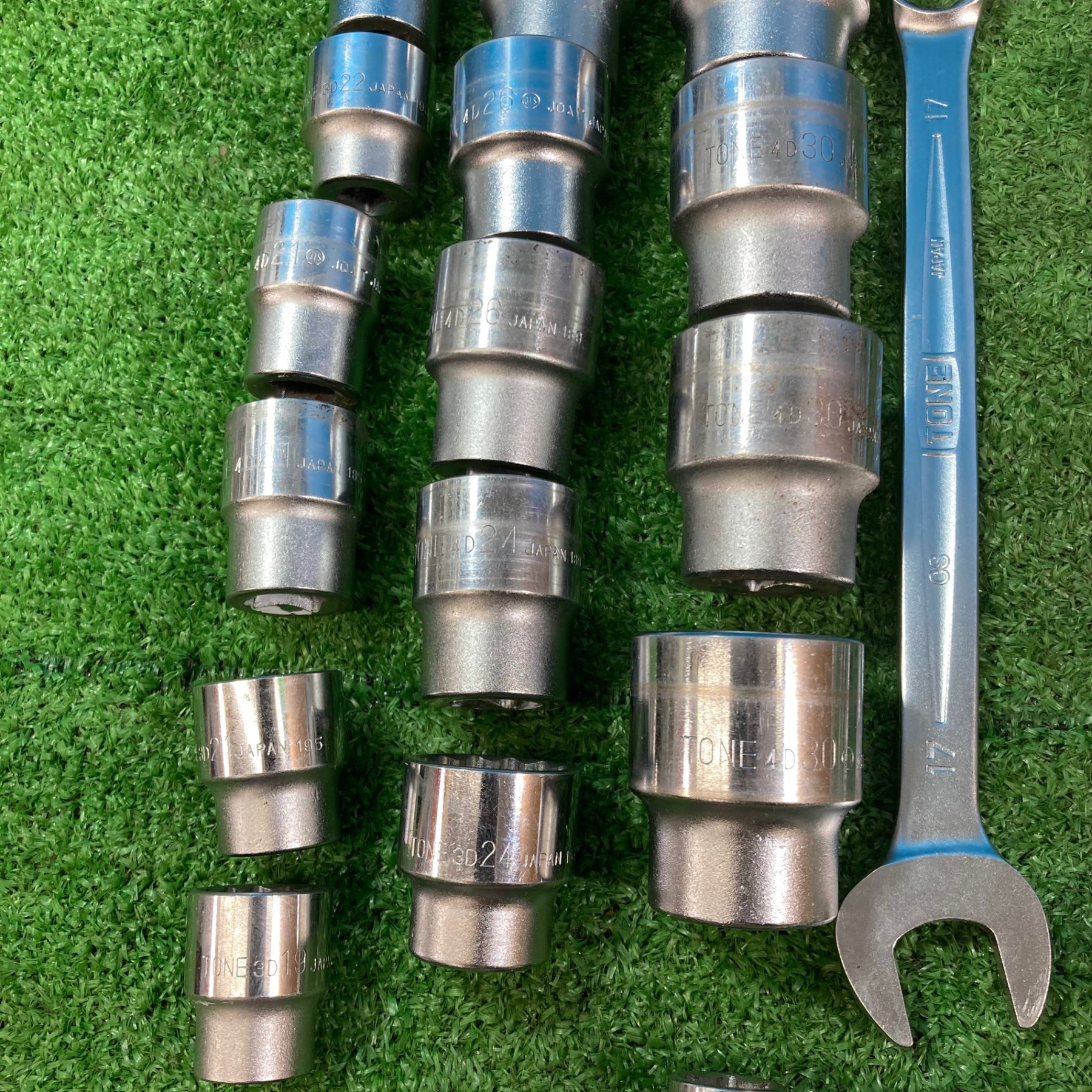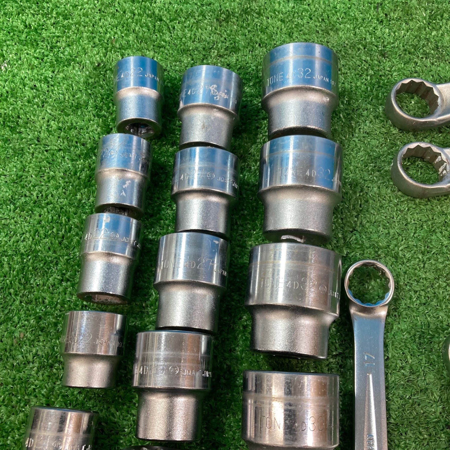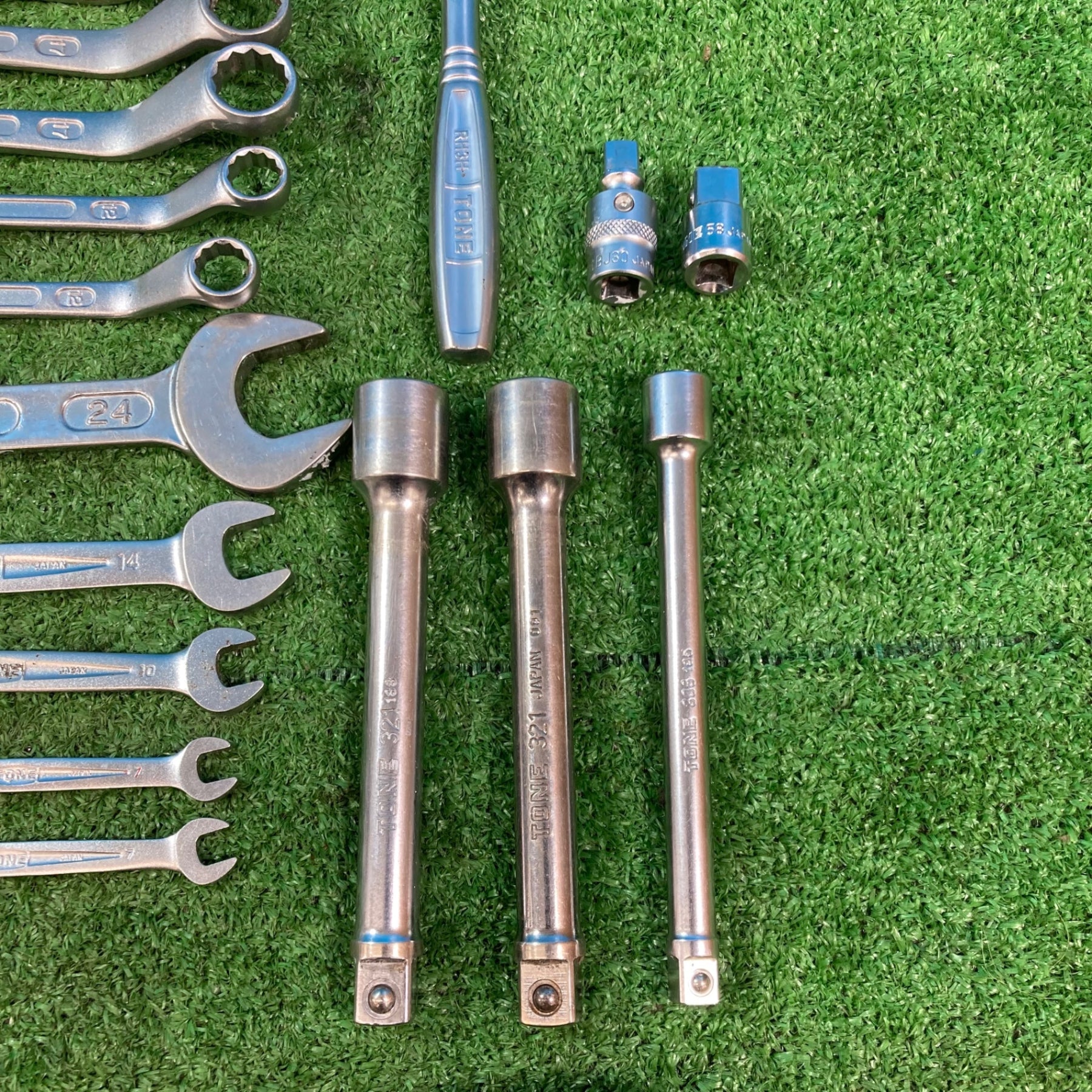【中古現状品】トネ(TONE) まとめセット メガネ スパナ コンビ ラチェット ソケット12P/6P各種 計65点