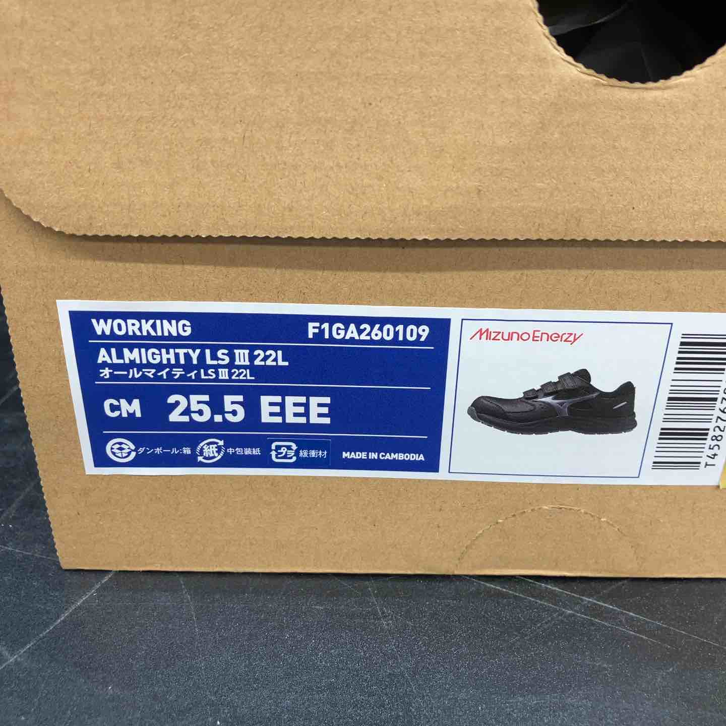 ミズノ 安全靴 オールマイティLS3 22L(ベルトタイプ) ブラック×シルバー F1GA260109 25.5cm【川越店】