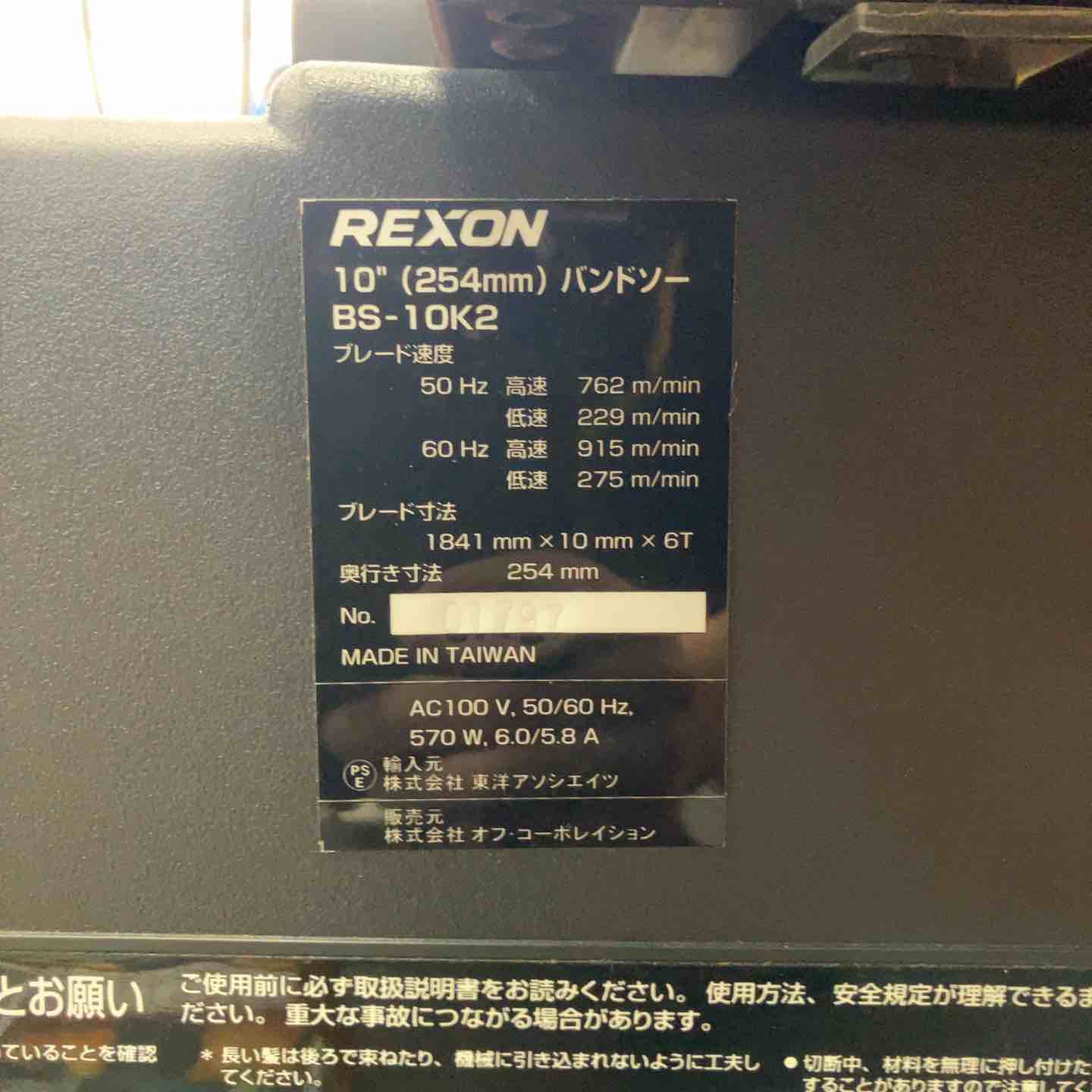 備考 REXON レクソン BS-10K2 10インチ バンドソー